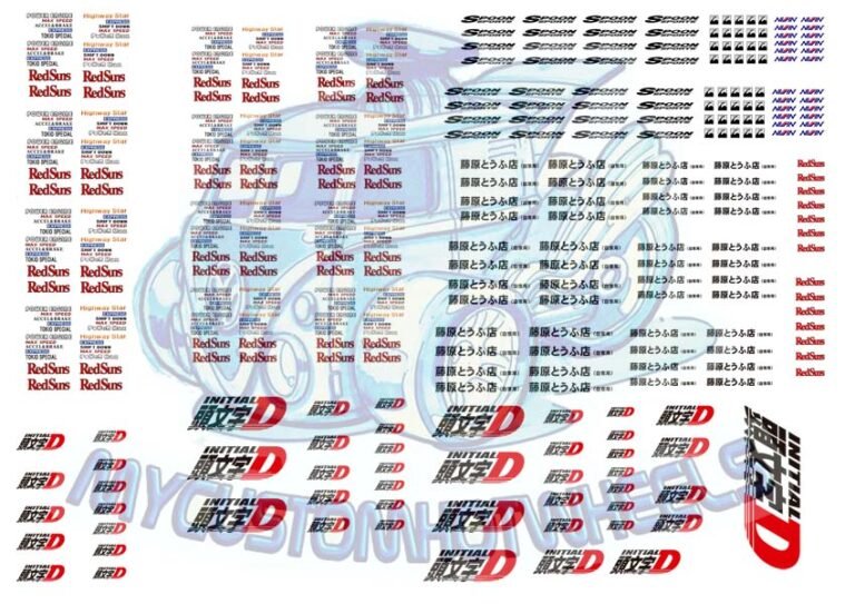 Complete your Toyota Trueno AE86 build or any Initial-D inspired custom with these waterslide decals in 1:64 scale and all popular model scales. Designed specifically for clear backed waterslide paper these high quality decals will take your next Initial-D inspired build to the next level - no matter what scale you like to play in.