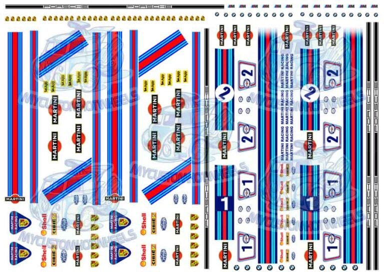 Included in the Porsche & BMW Martini Racing Decal Pack is enough livery to customise 11 vehicles in the famous colours of Martini Racing ** That is 11 cars in 1:64 & 1:43 scale or slightly fewer if opting for one of the larger scales like 1:24 or 1:18* as well as a heap of Porsche and BMW branded decals - including of course the famous 'PORSCHE' side panel livery and 'Turbo' font that we associate with the German Autohaus.