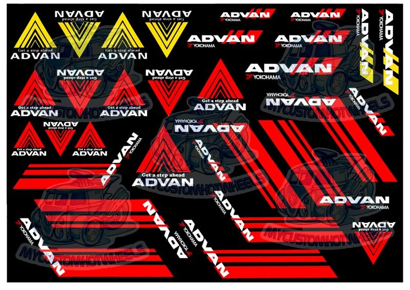 The Advan Racing livery looks good on almost any car, Euro or JDM and now you can take Advan from the track to the customizing bench with this set of water slide decals in all your favourite model building scales. Included in the Advan Racing Decals Pack are over 100 Tyre decals, a heap of Advan and Yokohama logos and enough full Advan Racing livery to customize 9 Hot Wheels cars.