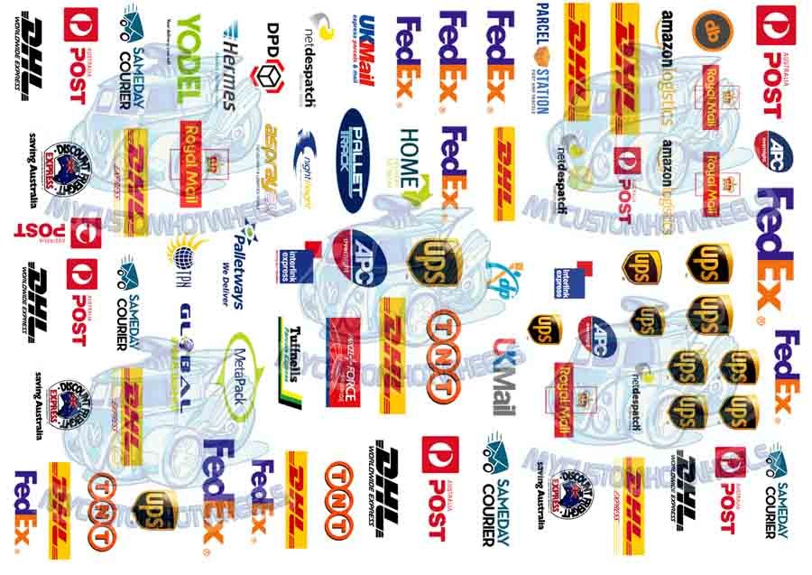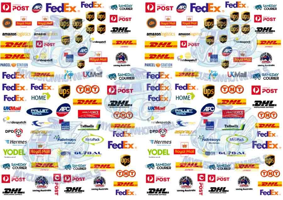 The Courier and Post decal pack comes with over 200 courier and postal services logos (in 1:64 and 1:43 scale) and includes a range of courier company logos and postal service brands like Fedex, UPS, DHL, Amazon Logistics, Royal Mail, UK Mail, Australia Post, APS, Sameday Couriers and many many more. Shipped on clear decal paper for your enjoyment. Get excited and go postal over this new courier decal pack and remember that it’s guaranteed next day delivery* *Not a guarantee 😀