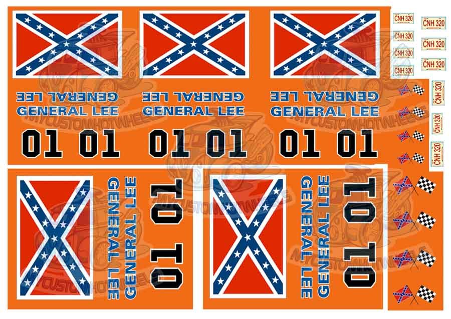 Complete your Diecast Television & Movie Cars Collection with this set of General Lee Decals. Included in this set is enough sets of the General Lee Livery to make customise 10 vehicles, with two different designs providing slightly different takes on the (now infamous) confederate flag.