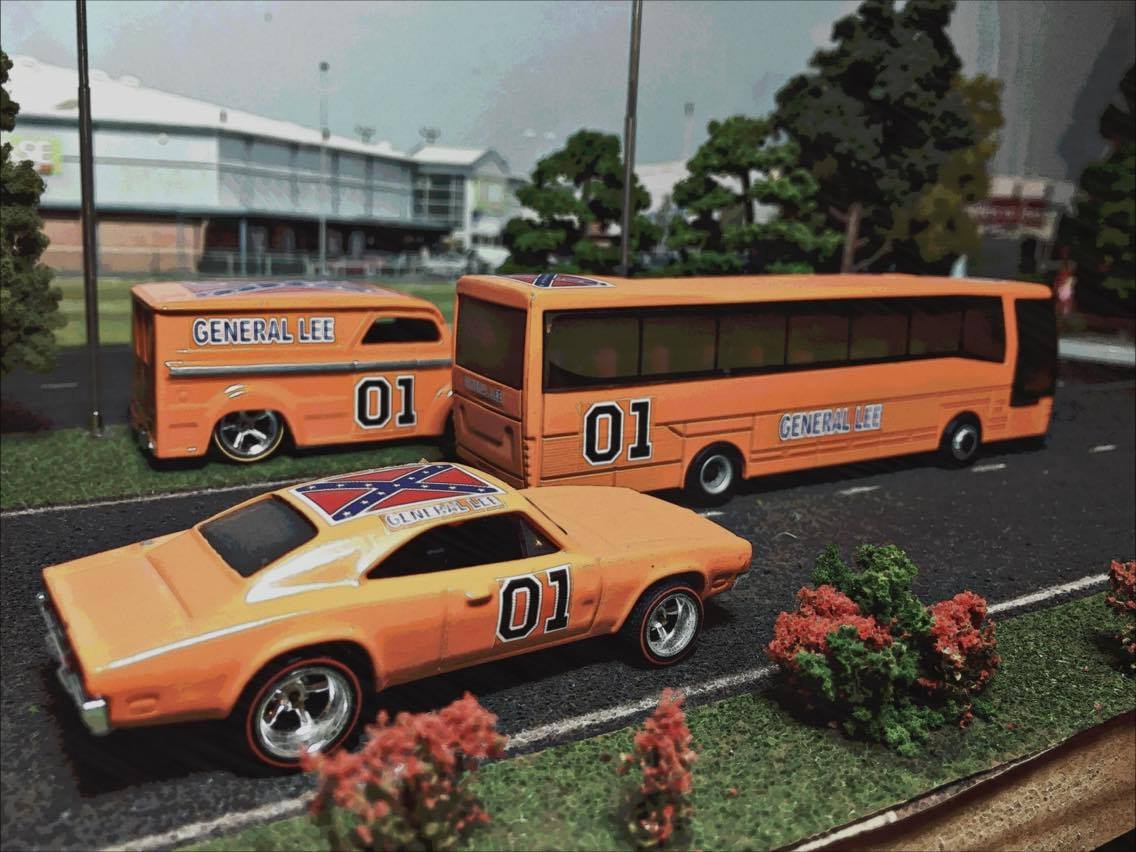 There is also 3 sets of the General Lee Decals in a slightly larger scale so that you may customise some of the larger Hot Wheels castings – as shown above (for example)