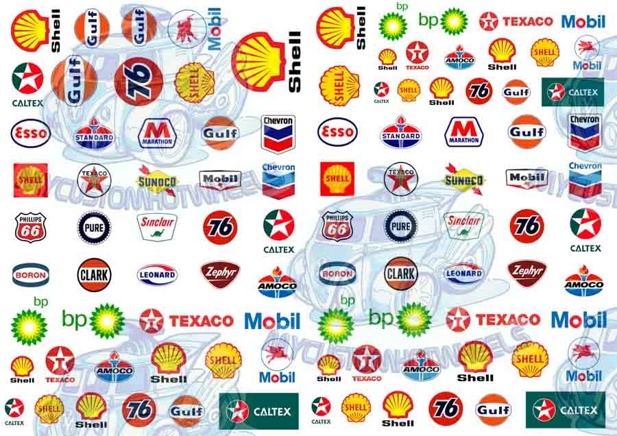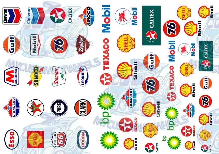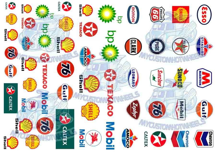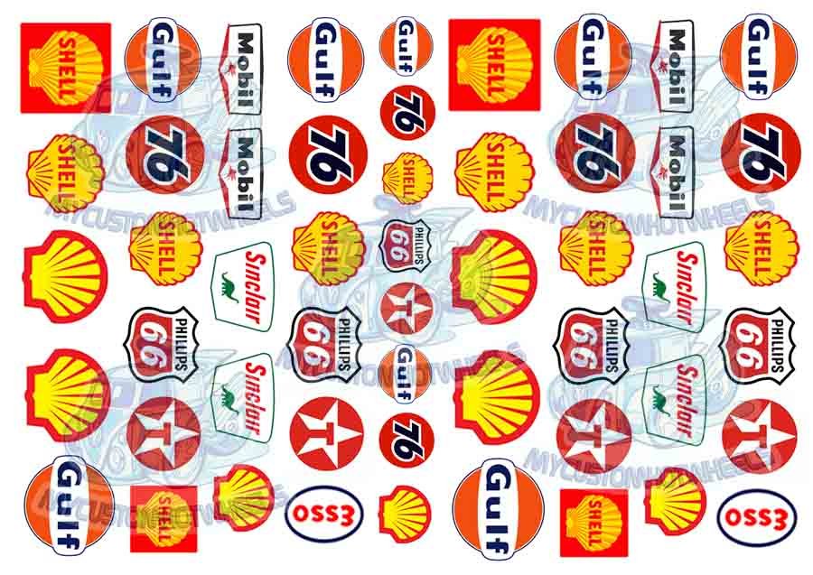 The Gas and Petrol Station Decal Pack comes with enough Oil company logos and Petrol/Gas station signage for you to customise well over 50 vehicles – regardless of what scale you are working in. *Over 100 logos come with the 1:64 Hot Wheels decal pack.