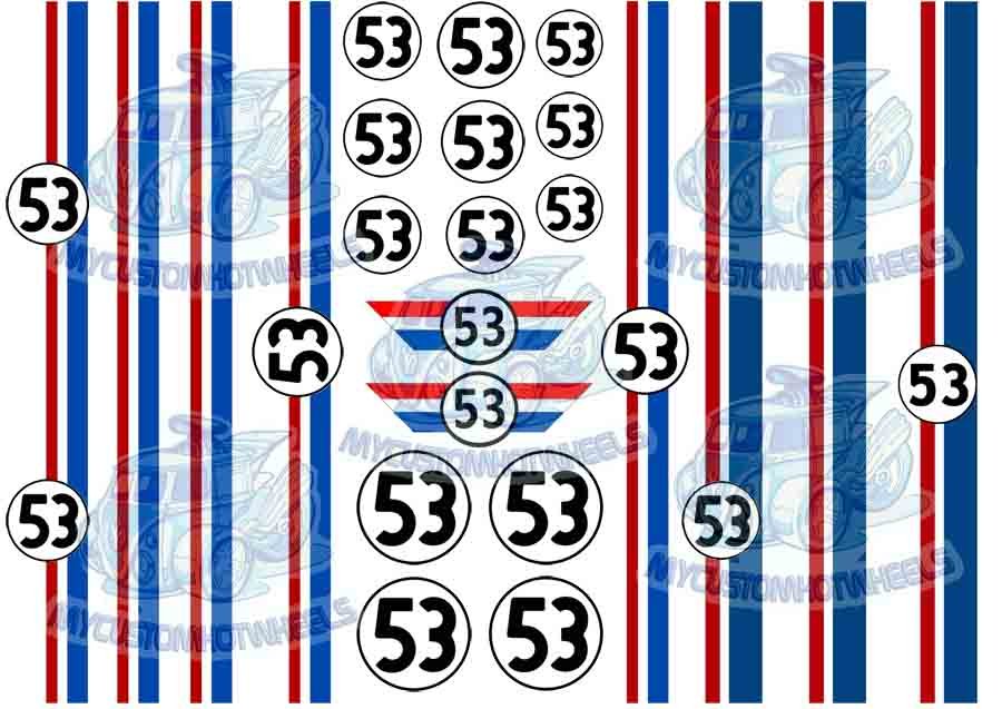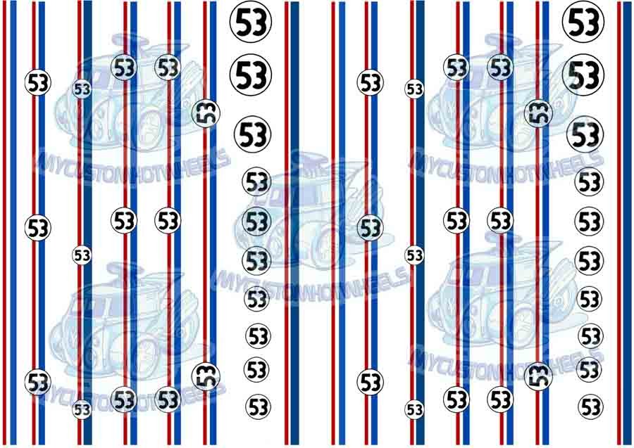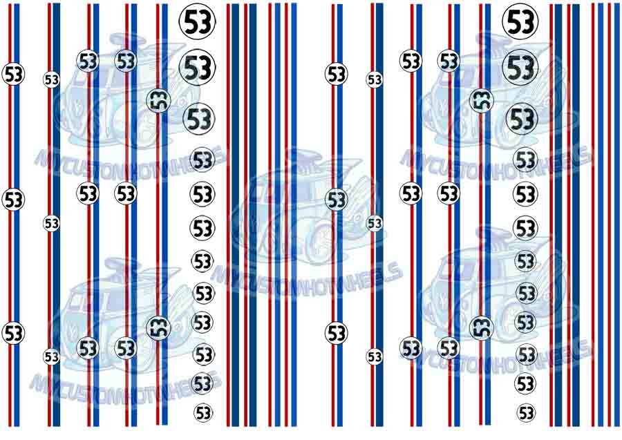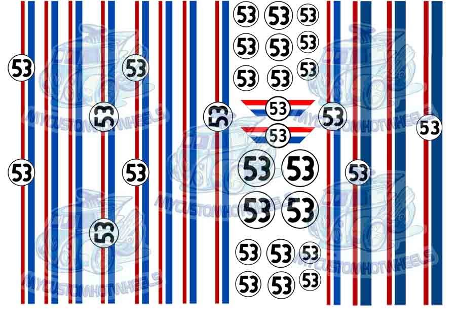 The Herbie Decal Pack is printed and shipped on CLEAR Decal Paper unless specified otherwise