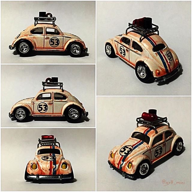 The Herbie Decal Pack comes with enough number 53s and matching racing stripes to make A LOT of Herbie inspired custom cars. The 1/64 Hot Wheels version for example contains enough decals to make over 25 Herbie inspired customs and even the 1/24 option lets you make 6 – enough to go bananas… or to Monte Carlo. Whichever you prefer 😉