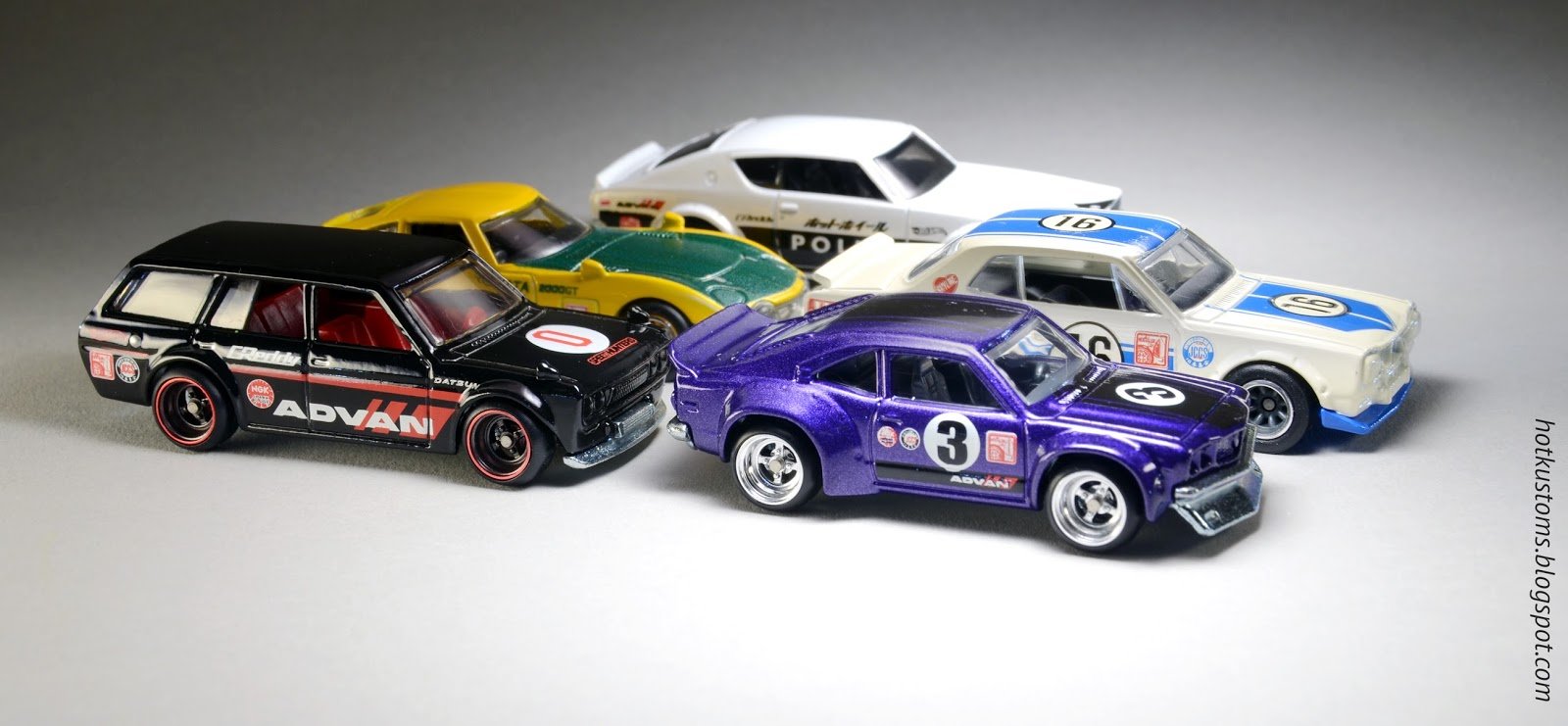Recreate the Datsun 510 wagon from the Hot Wheels Japan Historics series with this set of custom Advan Decals made specifically to match the livery you’ve come to know and love from our friends at Mattel.