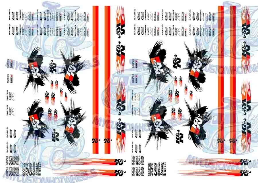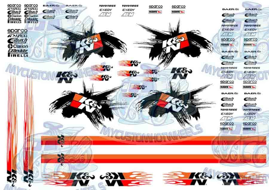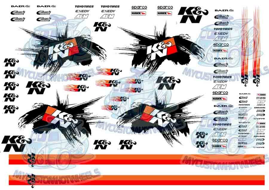 Stand out from the custom hotwheels crowd with these wildly stunning K&N Racing Decals. Included in the K&N Racing Pack is enough livery to customise 8 vehicles in the ‘complete kit’ or many many more if you choose to only use portions of each set.