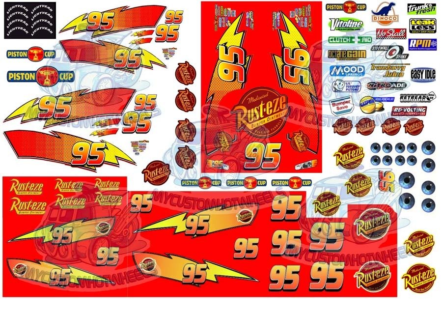 Grab yourself a Lightning McQueen Decal pack and enjoy turning all sorts of diecast and model cars into mini McQueens 🙂 – KA-CHOW!