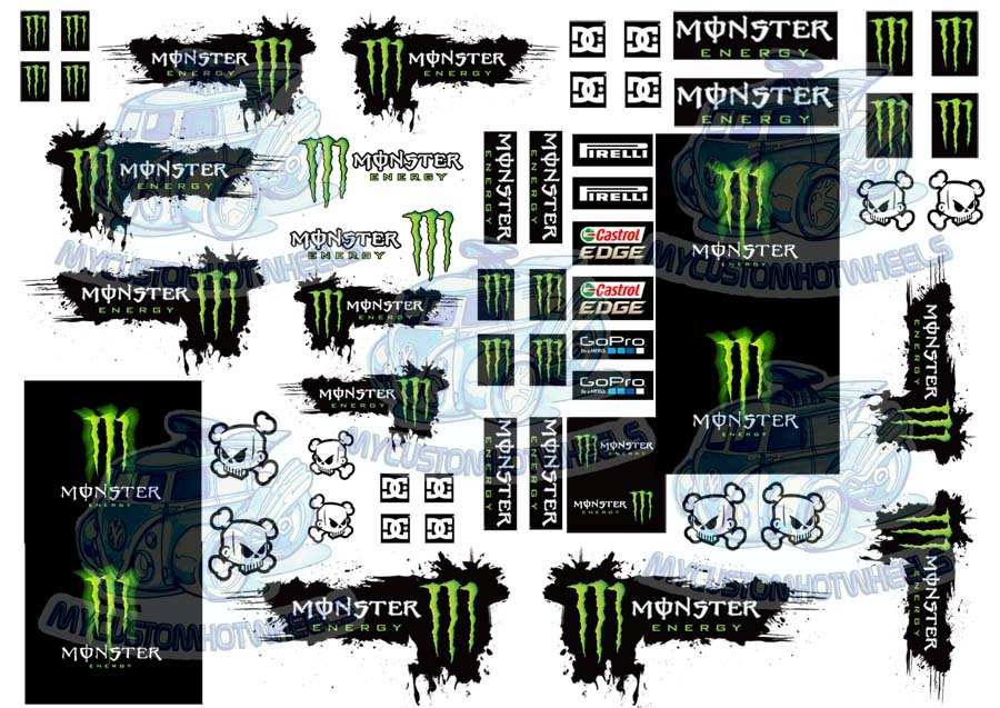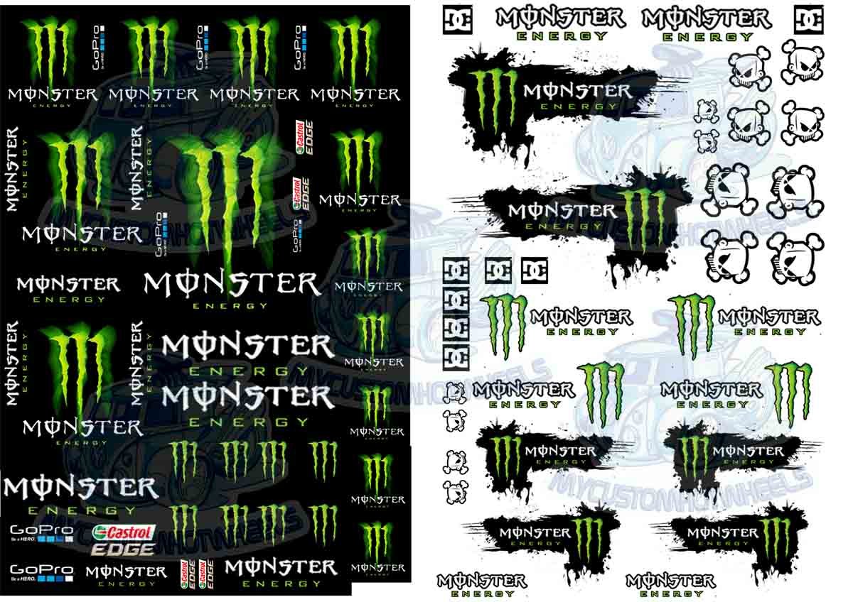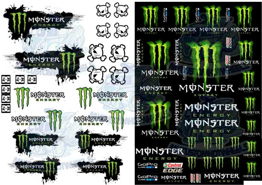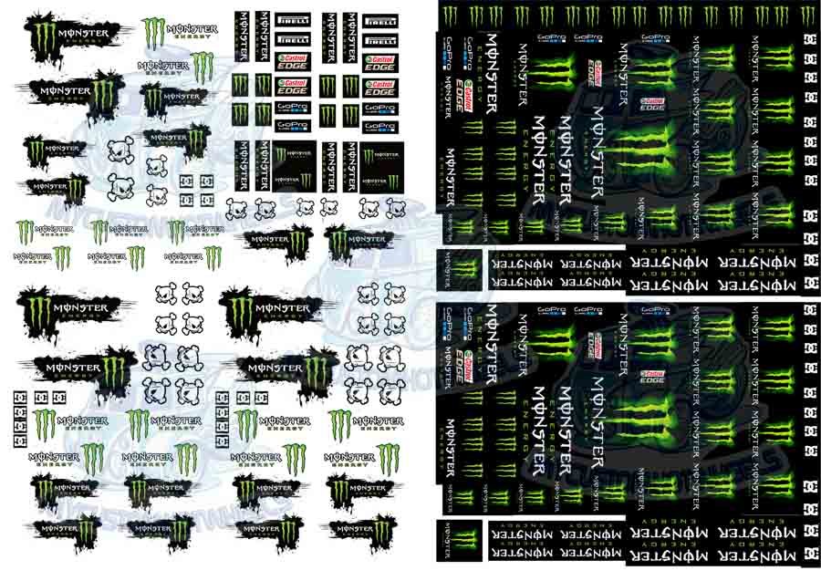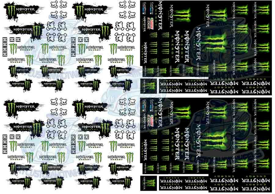 The Monster Energy Racing Decal Sheet is printed and shipped on both CLEAR AND WHITE Decal Paper