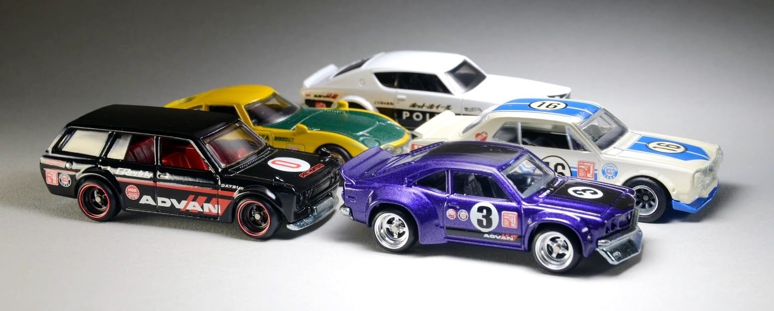 Finish off your hellasweet custom Hot Wheels build with this set of JDM inspired water-slide decals and racing stickers. Included in JDM Brands Pack 4 is some of the iconic Hakosuka livery as loved by Hot Wheels and designer Jun Imai. There's also a whole section of carbon fiber, K&N Racing livery, a heap of Mitsubishi Ralliart inspired decals and the JDM goodness is finished off with a heap of rising sun patterns to use on doors, bonnets, or entire Hot Wheels cars.