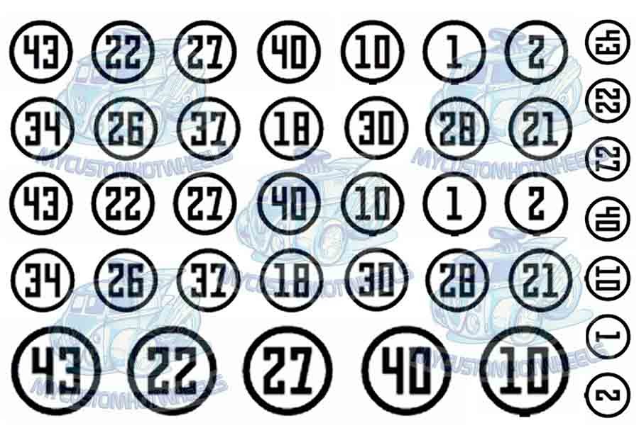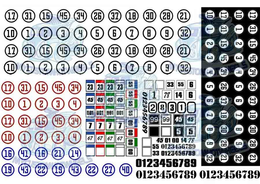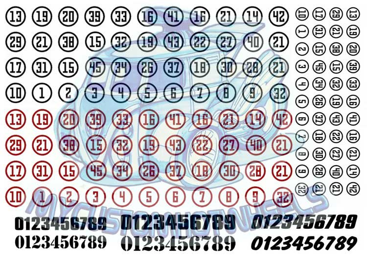 Racing Numbers (Round) – Waterslide Decal Pack