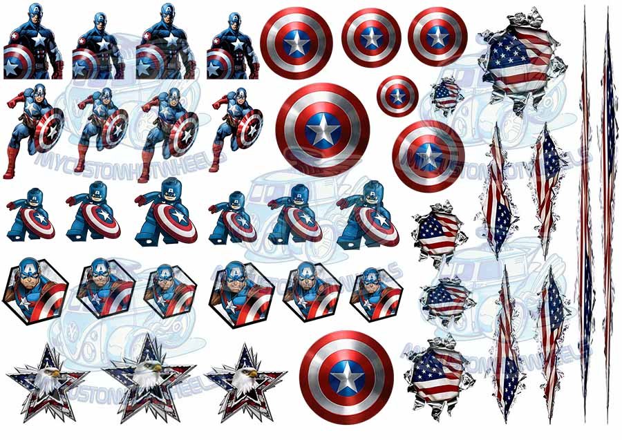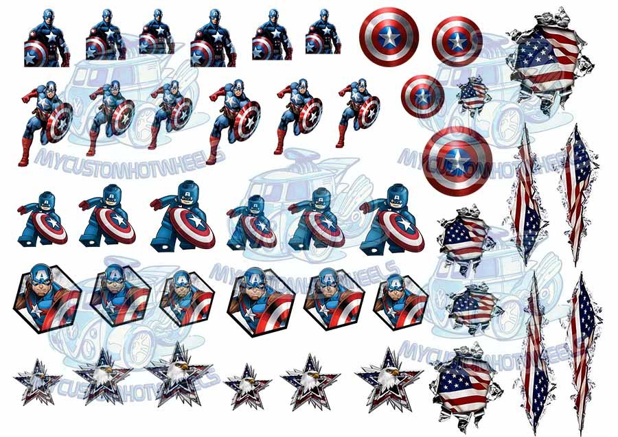 ** The USA & Captain America themed Decal Pack comes printed on CLEAR decal paper **